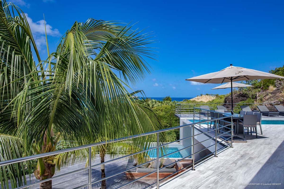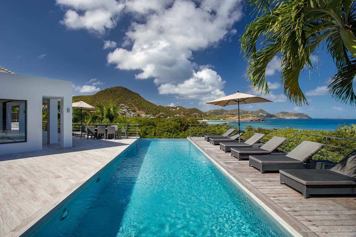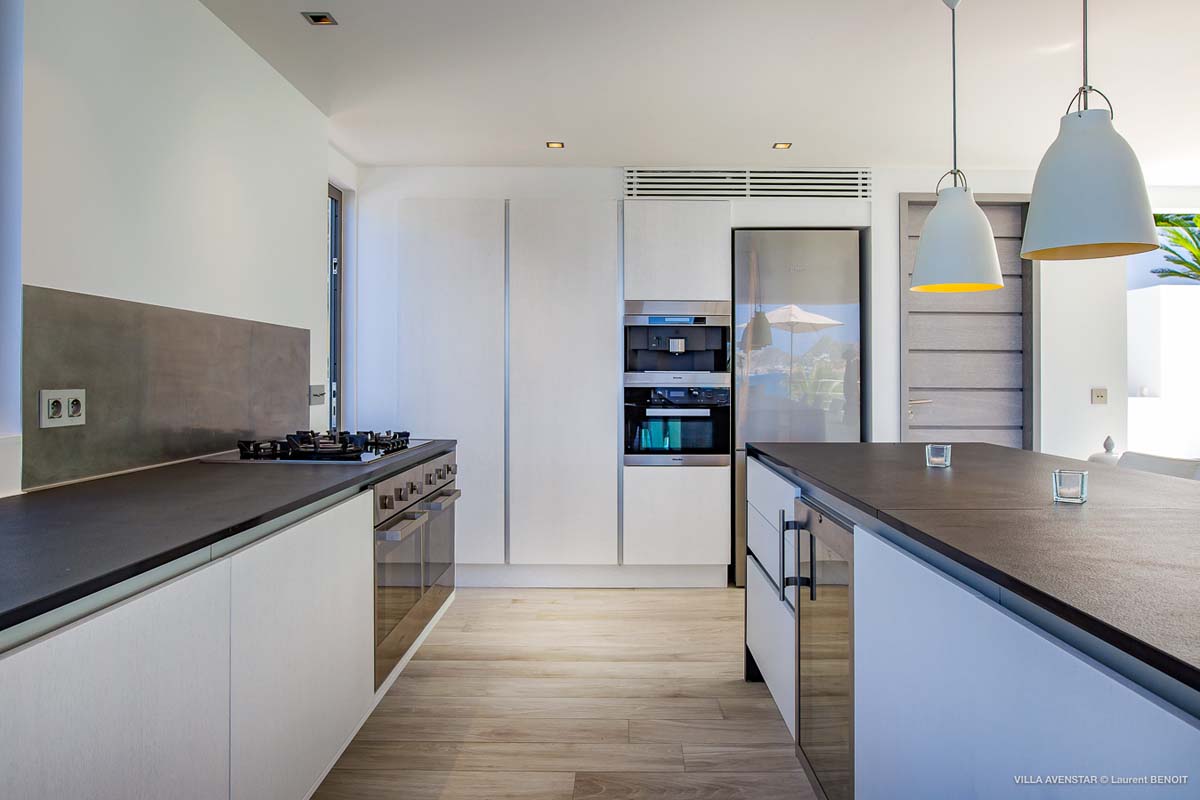 Великолепная современная вилла на возвышенности Камаруше с видом на залив Лорьян. В вилле Avenstar, построенной на двух уровнях, каждый с террасой и бассейном, есть большая гостиная с открытой кухней, 5 спален и 5 ванных комнат.