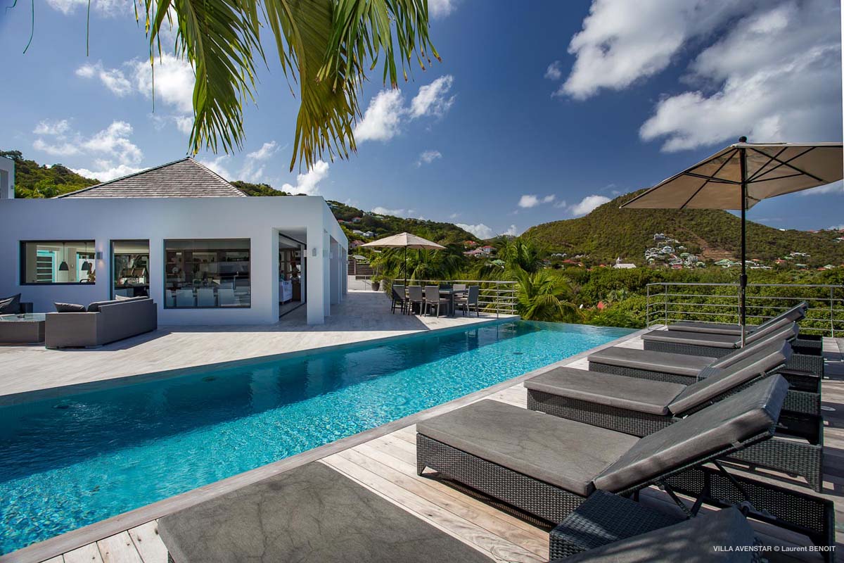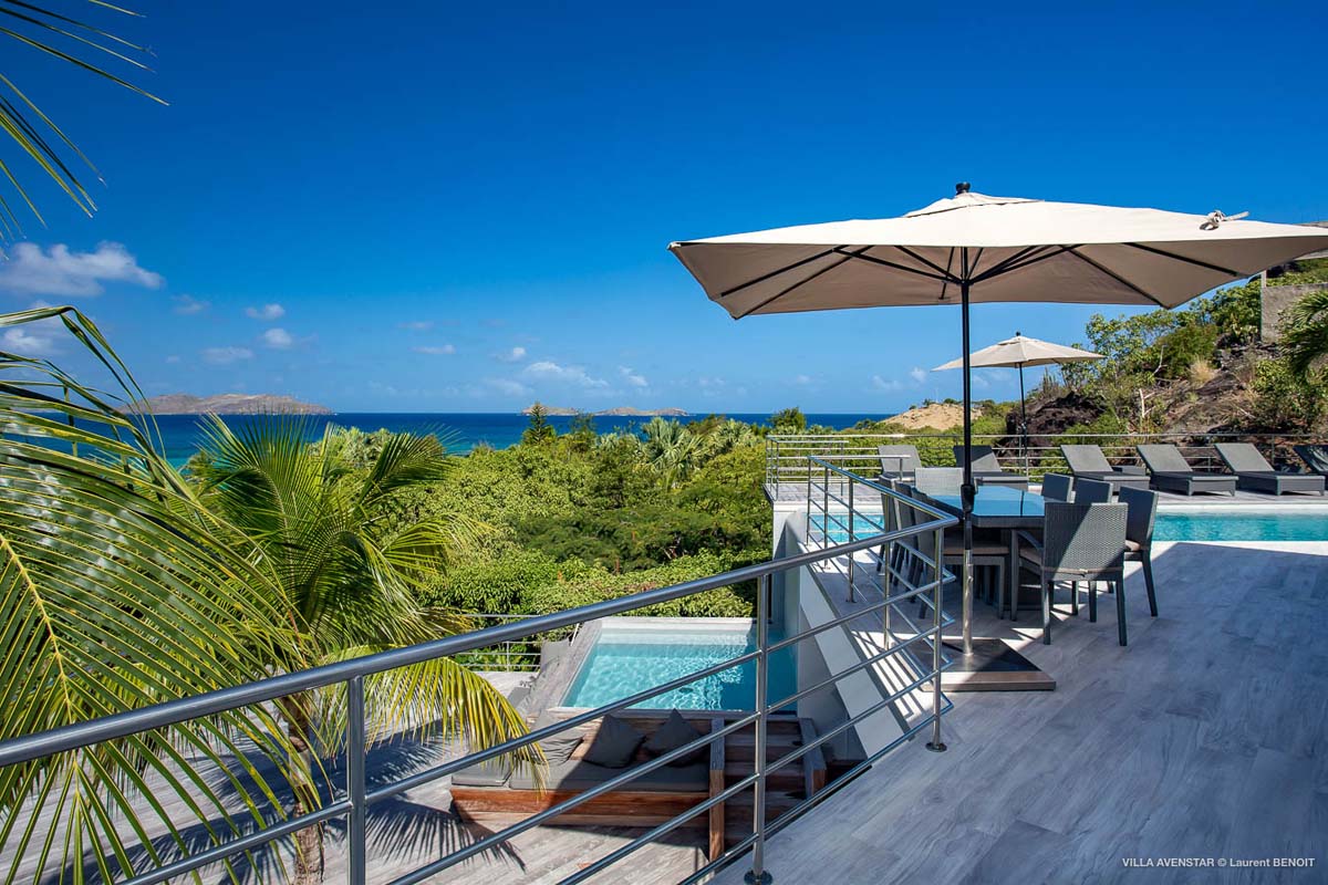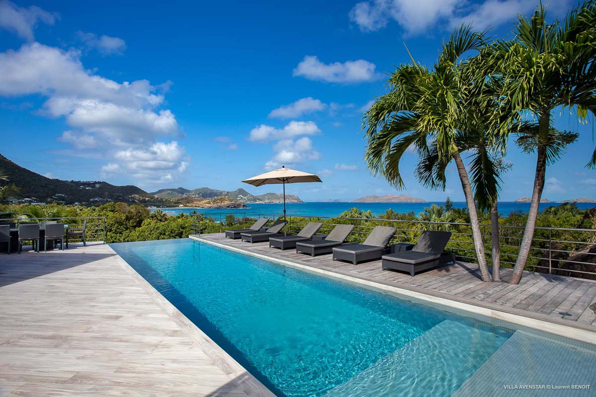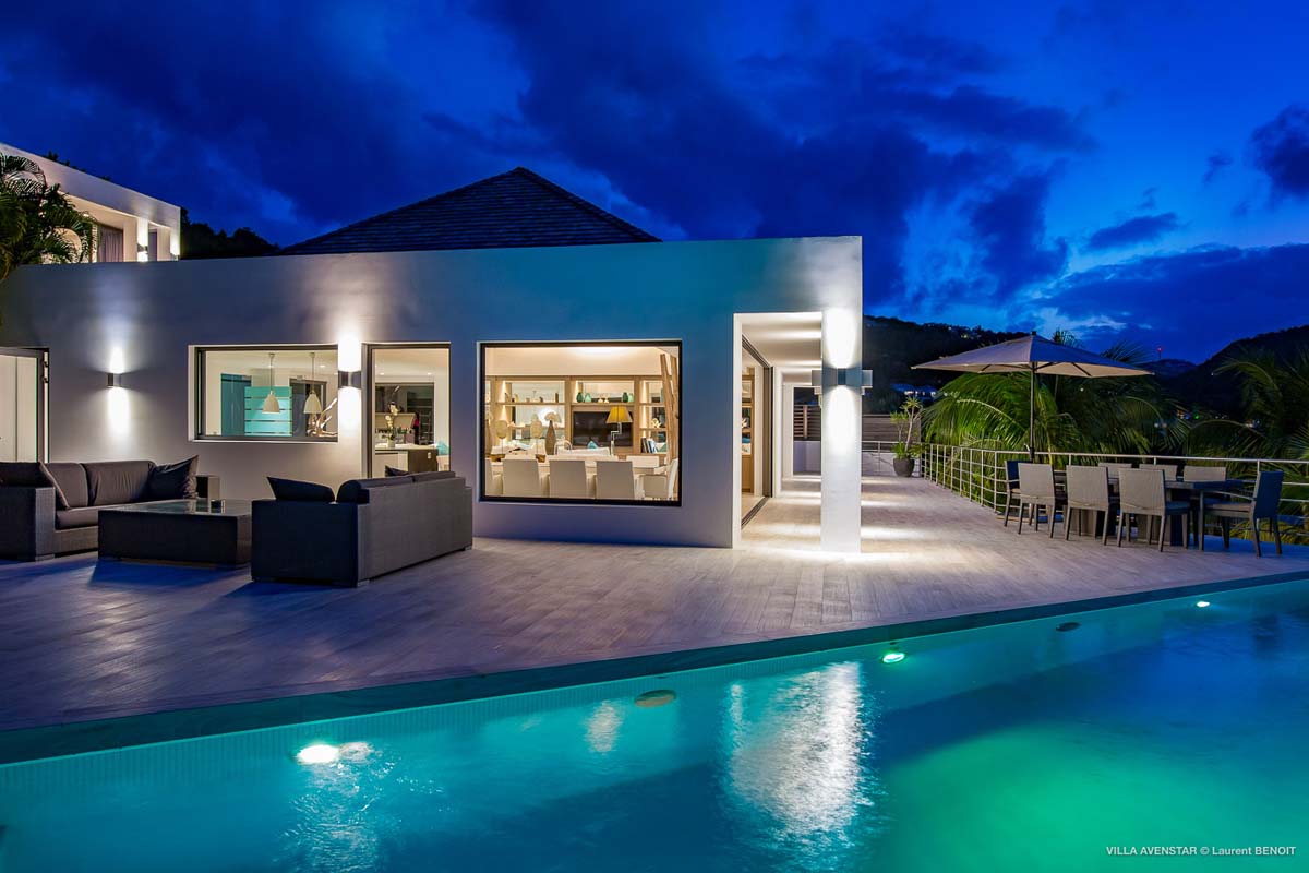 Великолепная современная вилла на возвышенности Камаруше с видом на залив Лорьян. В вилле Avenstar, построенной на двух уровнях, каждый с террасой и бассейном, есть большая гостиная с открытой кухней, 5 спален и 5 ванных комнат.