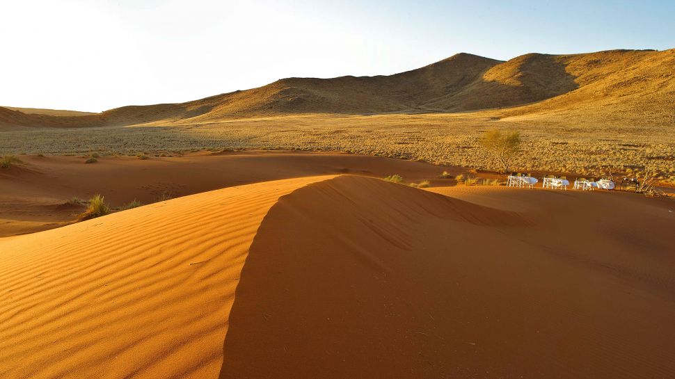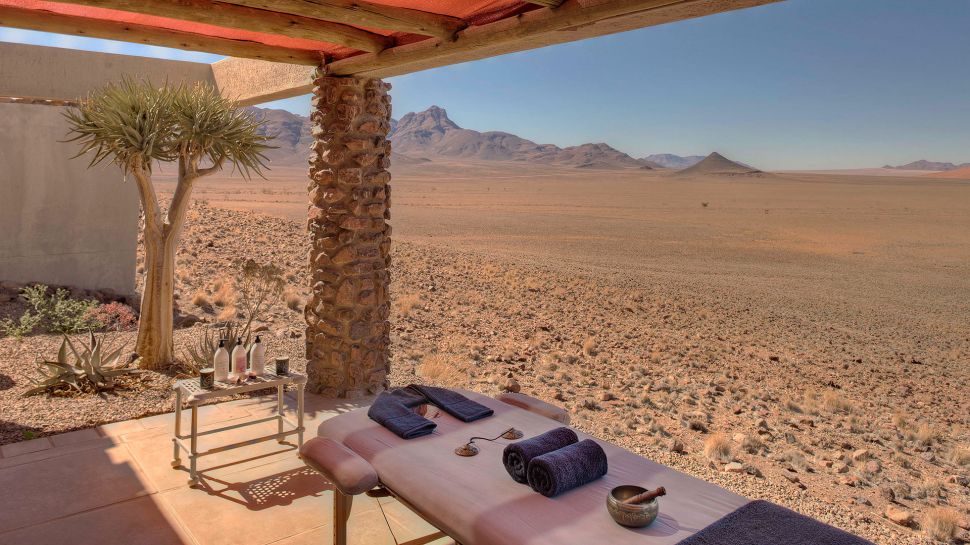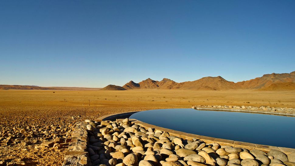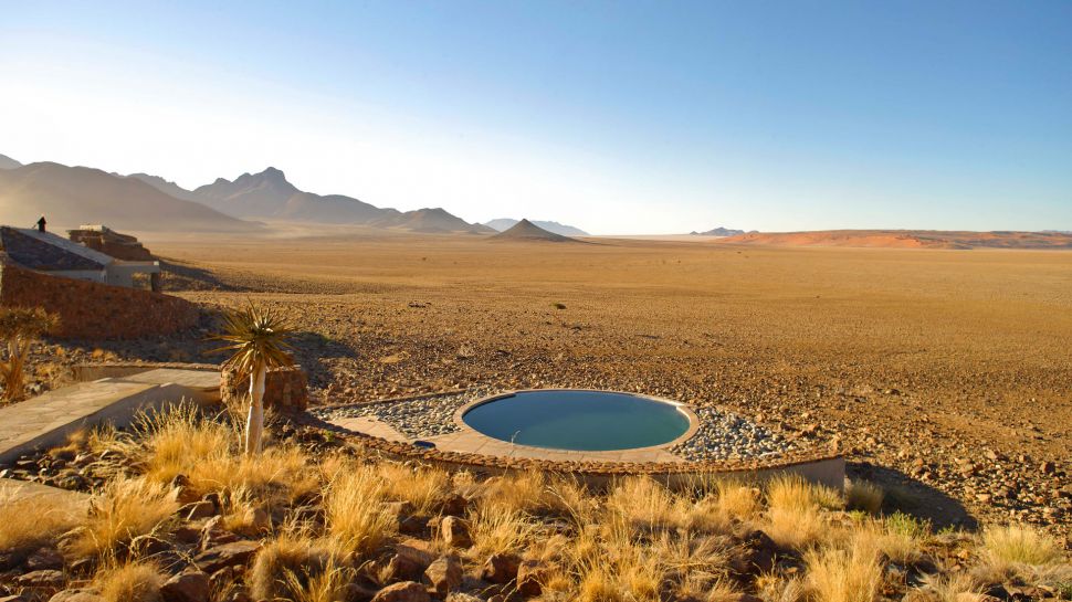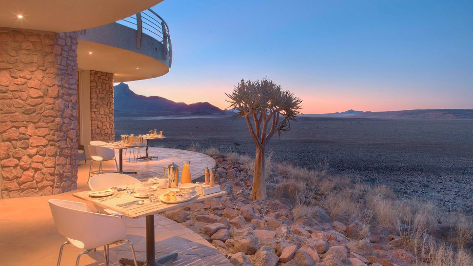 Окруженный горами и песчаными дюнами пустыни Намиб andBeyond Sossusvlei Desert Lodge - это мир тишины и полного спокойствия.