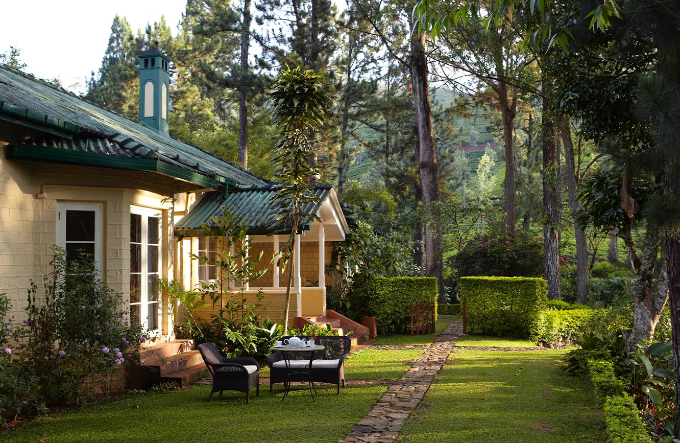Первый в мире курорт, состоящий из бунгало на чайных плантациях, расположенный на высоте 1250 метров с панорамным видом на регион, где выращивается цейлонский чай, этот регион граничит с центральным нагорьем. Пять чайных бунгало, всего 27 номеров, соединены пешеходными тропами, через потрясающе красивые цейлонские чайные плантации. Это идеальное место для пеших и велосипедных прогулок посреди восхитительных пейзажей с видом на горы, озера, извилистые тропы и водопады. Те, кто хотят просто расслабиться, могут понаблюдать за жизнью на действующей чайной плантации, посетить спа – процедуры, поиграть в крокет на лужайке, позагорать у бассейна, и воспользоваться услугами личного дворецкого. В тарифы включено всё - еда, закуски, вина, спиртные напитки, безалкогольные напитки, прачечная, Wi-Fi, местные телефонные звонки.