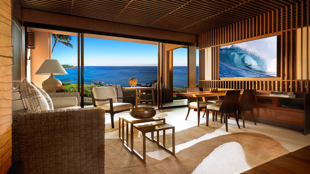 Роскошный отель расположен на побережье на территории морского заповедника острова Lana’i. Современные интерьеры с колоритными фольклорными акцентами, просторные стильные номера, великолепный сервис и огромная территория на самом "необитаемом" острове в гавайском архипелаге. Если и существует возможность скрыться от шума и суеты на самом краю земли, на острове, в чей ландшафт никогда не вторгался человек, где потоки красной лавы тысячи лет назад застыли в водах океана причудливыми скалами, где среди горных пиков прячутся райские пляжи, а в синих водах океана резвятся огромные горбатые киты - то это место Four Seasons Resort Lana'i.