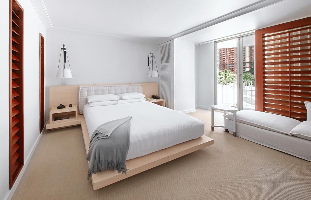 Интерьер этого отеля неповторим: дизайнеры George Yabu, Glenn Pushelberg и Deborah Nevins сыграли на контрасте светлых стен и мебели с темным дубовым полом. В холле на стене - инсталяция из досок для серфинга, созданная спортсменом и художником Herbie Fletcher, а вход в лобби-бар скрывается за крутящимся стеллажом.