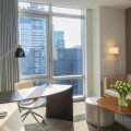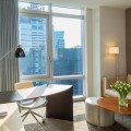 Комфортабельные номера в современном стиле. В номере: небольшая зона отдыха с мягким креслом, рабочий стол, панорамные окна от пола до потолка. Ванная комната с ванной и отдельной душевой кабиной.