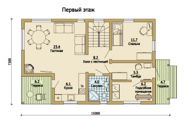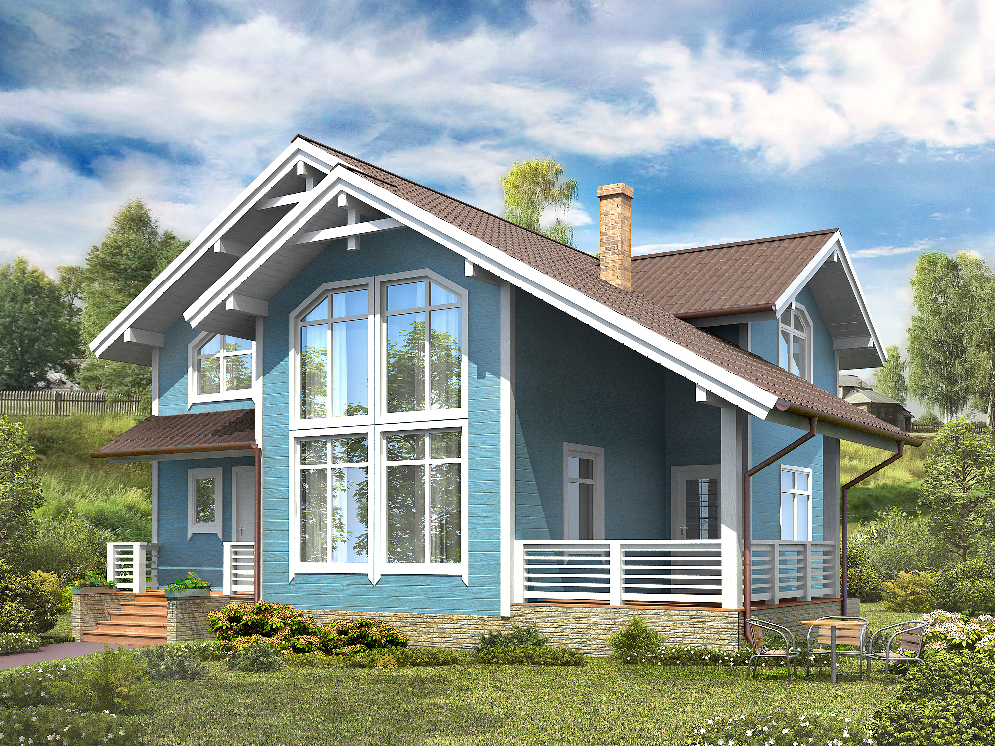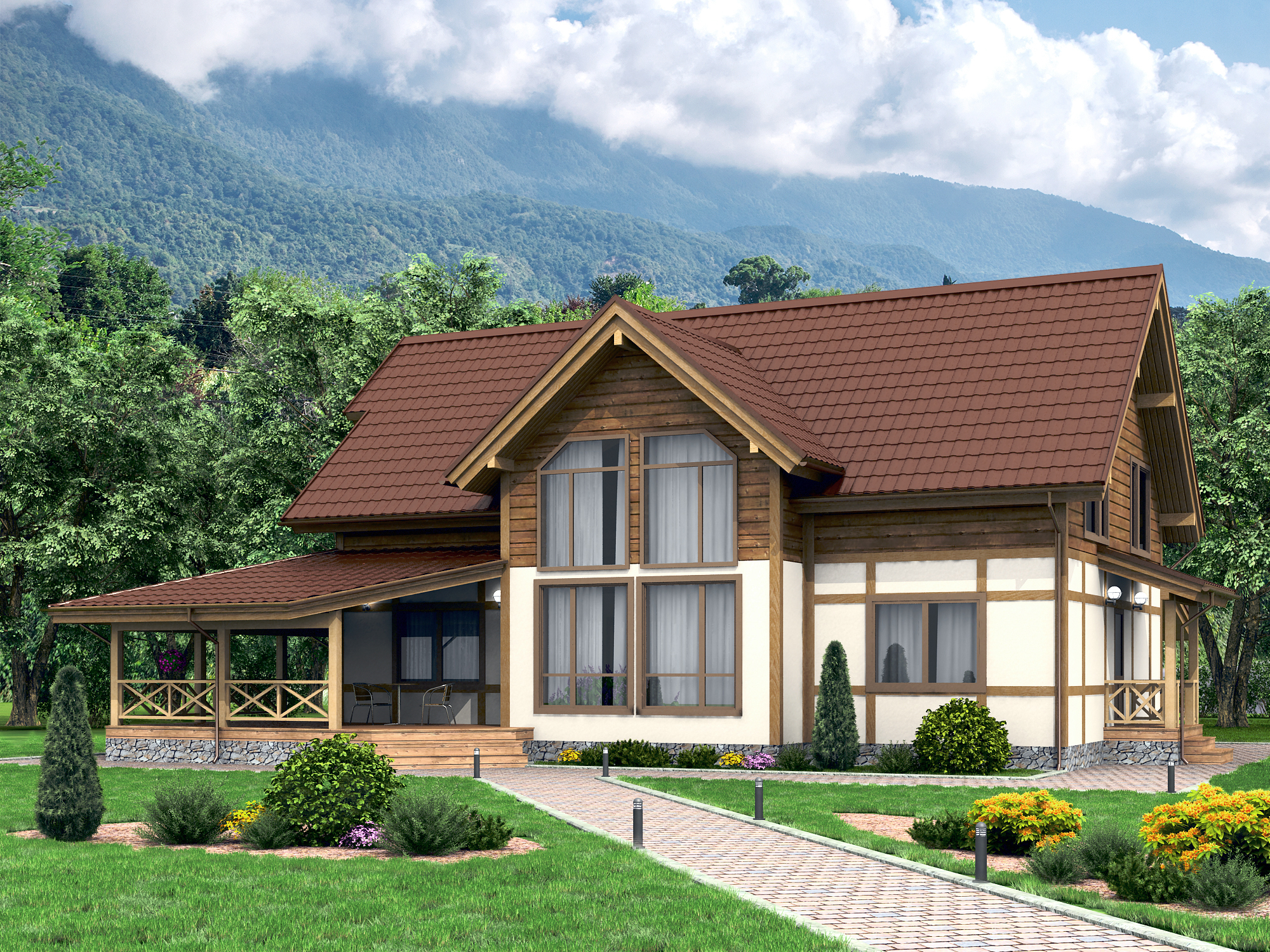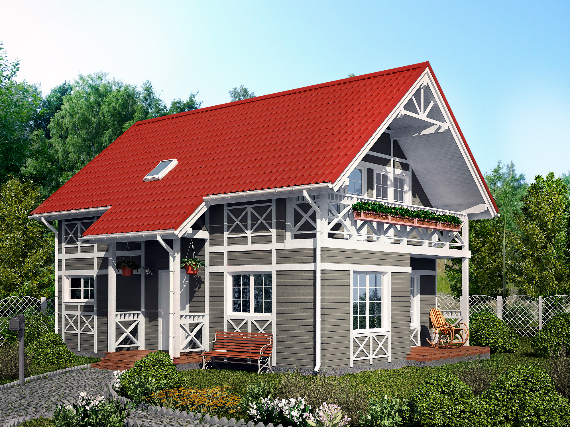 Любителям стиля шале мы предлагаем этот не дорогой и очень компактный дом для семьи с 2 детьми и взрослым родителем.