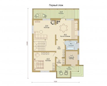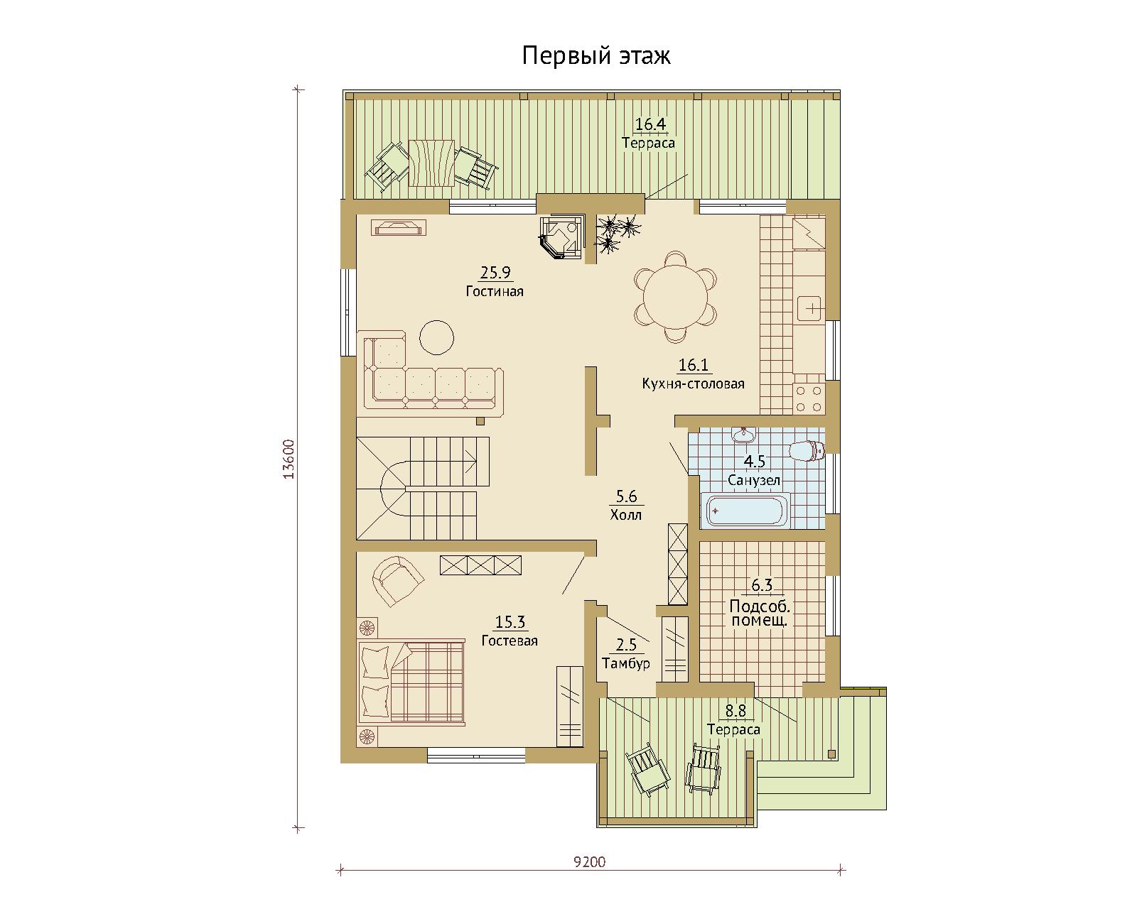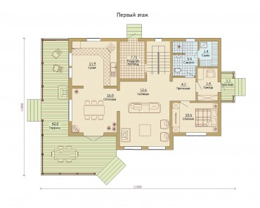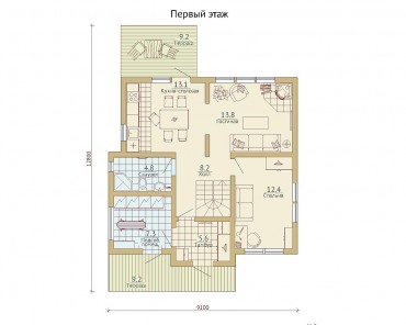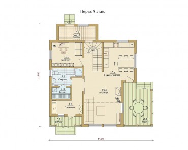 • Предусмотрена большая кухня, переходящая в такую же просторную столовую