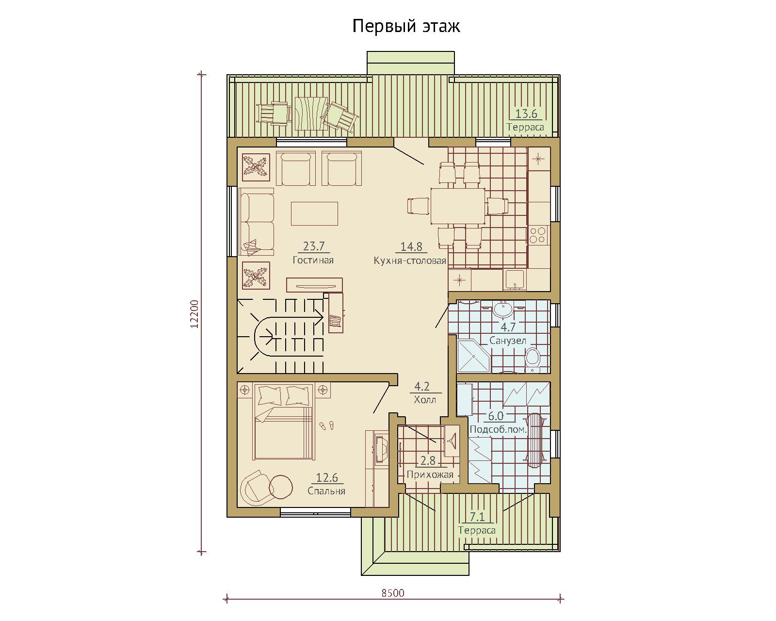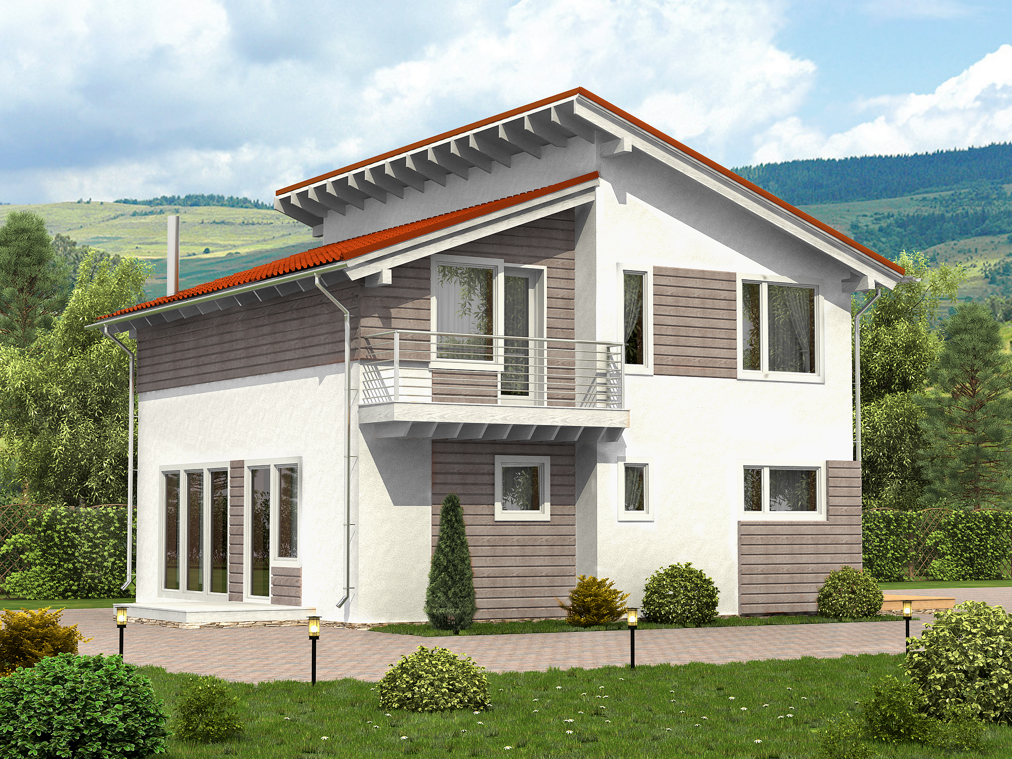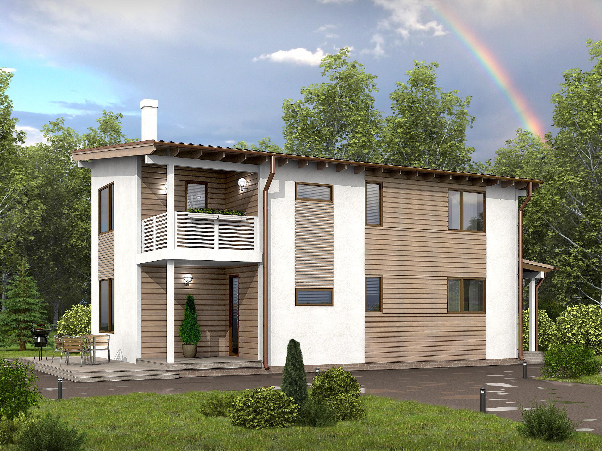Простой и рациональный дом в типичном европейском стиле. Площадь дома позволяет с удобствами разместиться семье с двумя детьми, или семье с одним ребенком и старшим родителем.