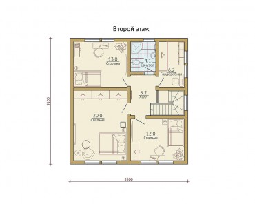 • При необходимости на верхнем этаже в холе можно оборудовать еще одну спальню, задействовав часть холла в зоне второго света.