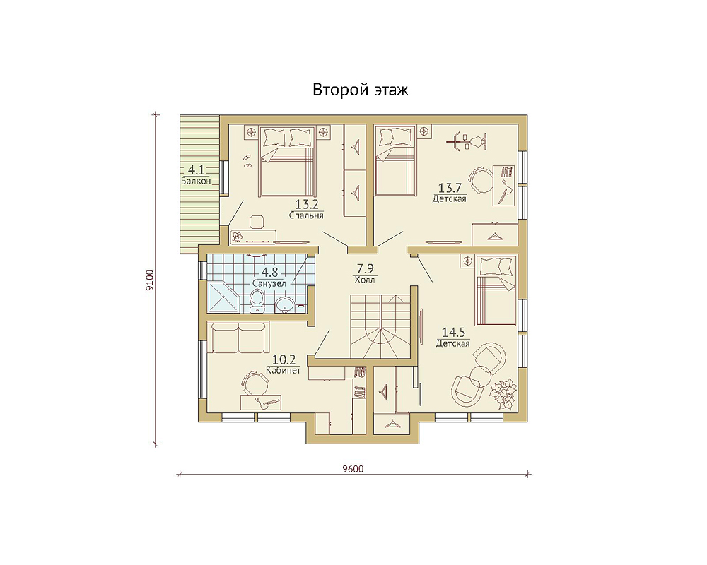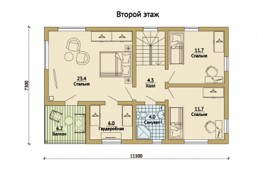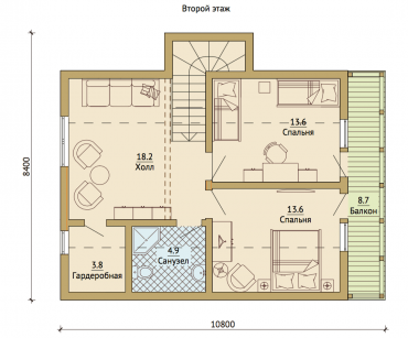 • Удобное размещение спальни на 2 этаже с выходом на балкон