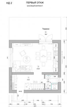 Фундамент – теплая плита (теплый пол на весь первый этаж), стены первого этажа – поризованный кирпич с утеплением (отделка 1 этажа: штукатурка с покраской, на полу - плитка), второй этаж – профилированный брус, санузел с установленными сантехприборами.