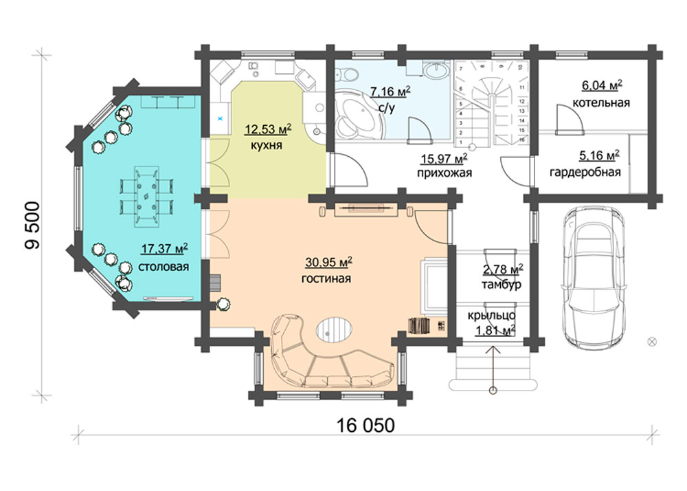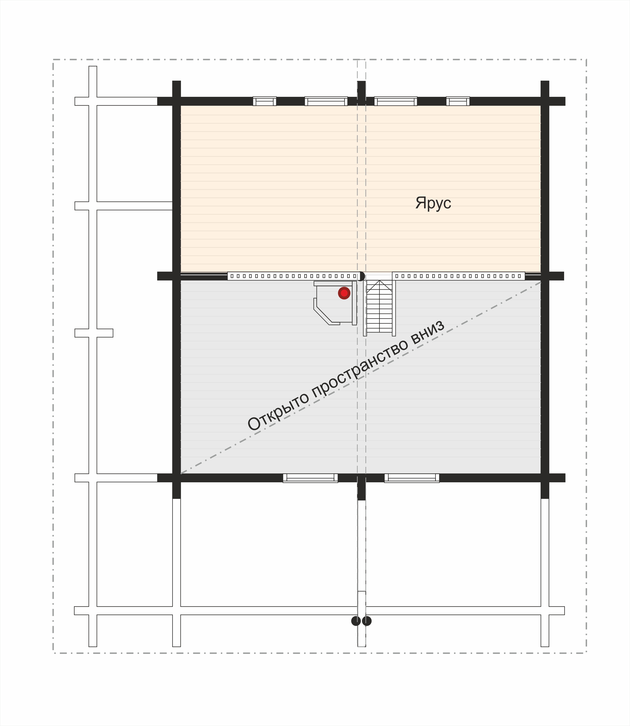 • Стеновой комплект из оцилиндрованного бревна диаметром 220-260мм.