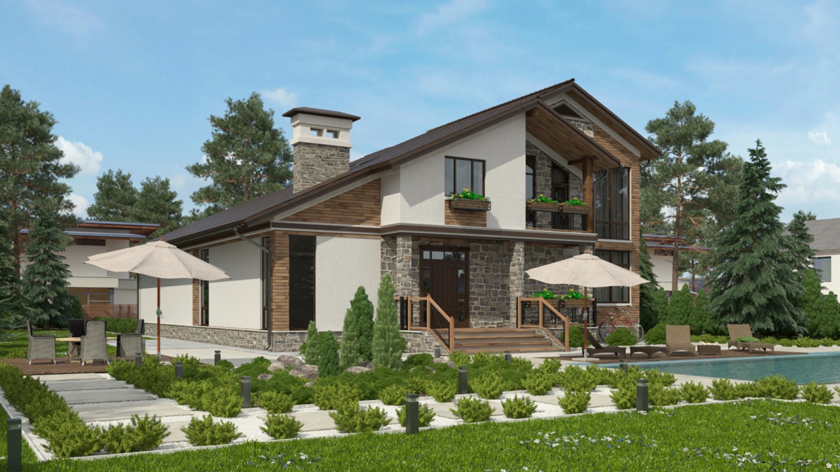 Элегантный дом в скандинавском стиле. Имеет прекрасную терассу, второй свет, спальню и большой каминный зал в котором места хватит всем членам дружной семьи.