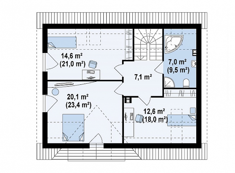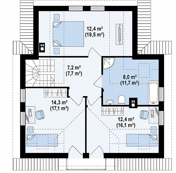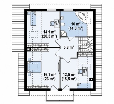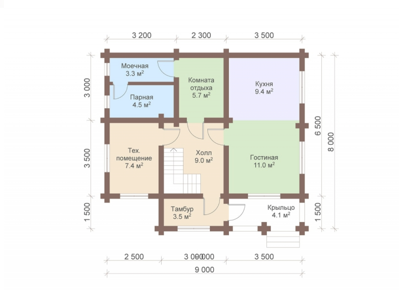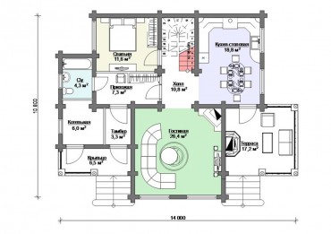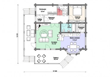 Компактный дом в традиционно-русском стиле. Уникальность этого дома в том что, не смотря на скромные размеры, помимо спален, кухни и гостинной, в нём нашлось место для «банного уголка» и открытого пространства «второй свет».