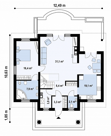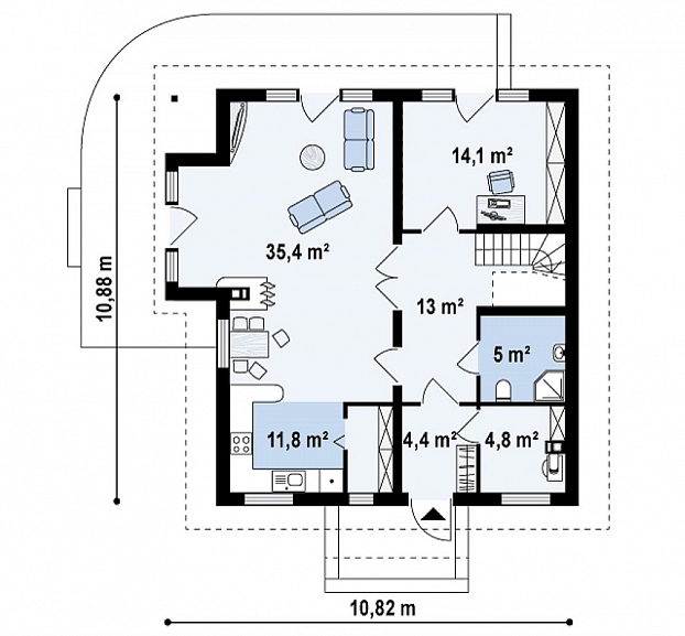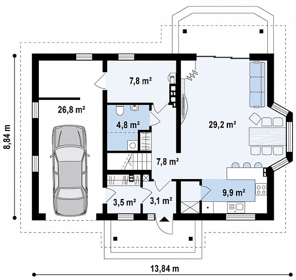 Уютный дом, вмещающий в себя все необходимое для постоянного проживания. Завораживающее сочетание компактности и эстетичности.