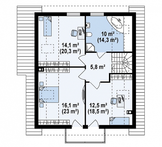 • Стропильная система : Стропильная доска 50х150мм, обрешетка 25х100мм, контробрешетка 50х50мм.Гидропароизоляционная пленка.