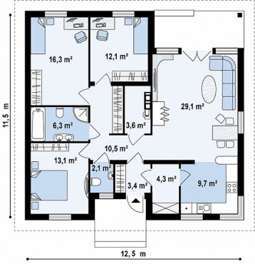 Просторный одноэтажный дом, спроектированный по финским стандартнам. Идеально подойдет для семьи, которая ценит минимализм и гармониию.